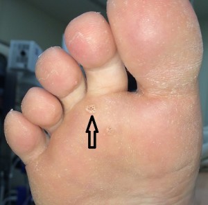 Warts are benign skin lesions due to a viral infection, known as the Human Papilloma Virus (HPV). This generally invades the skin through small cuts and abrasions. They can be painful and are often mistaken for corns or calluses. They can appear anywhere on the skin, but are commonly found on the bottom of the foot (plantar warts). They may be treated with liquid acids, plasters of acid, freezing, vitamins, medications, injections, and laser removal. The greatest success rate is found with laser removal of warts. Approximately 50% of warts may resolve without treatment over a two year period, however, treatment is recommended to prevent spread of the infection to the foot and other people.